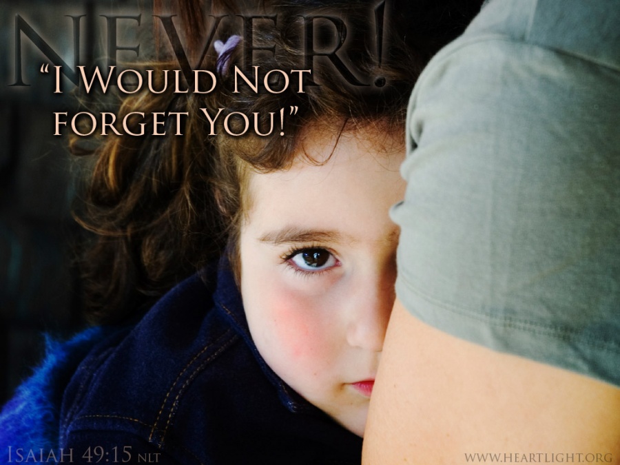 Second, God has promised us, his children and Jesus' disciples, that he would be present with us and never forsake us (Hebrews 13:5-6). More faithful than a mother to the child at her breast, the Lord will not forget us (Isaiah 49:15). We know that the Lord will never forsake those of us who trust in him and call on his name (Psalm 9:10).